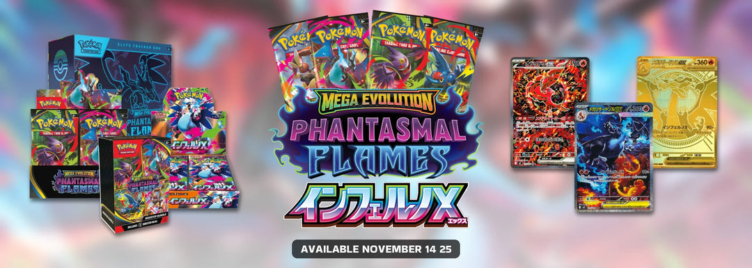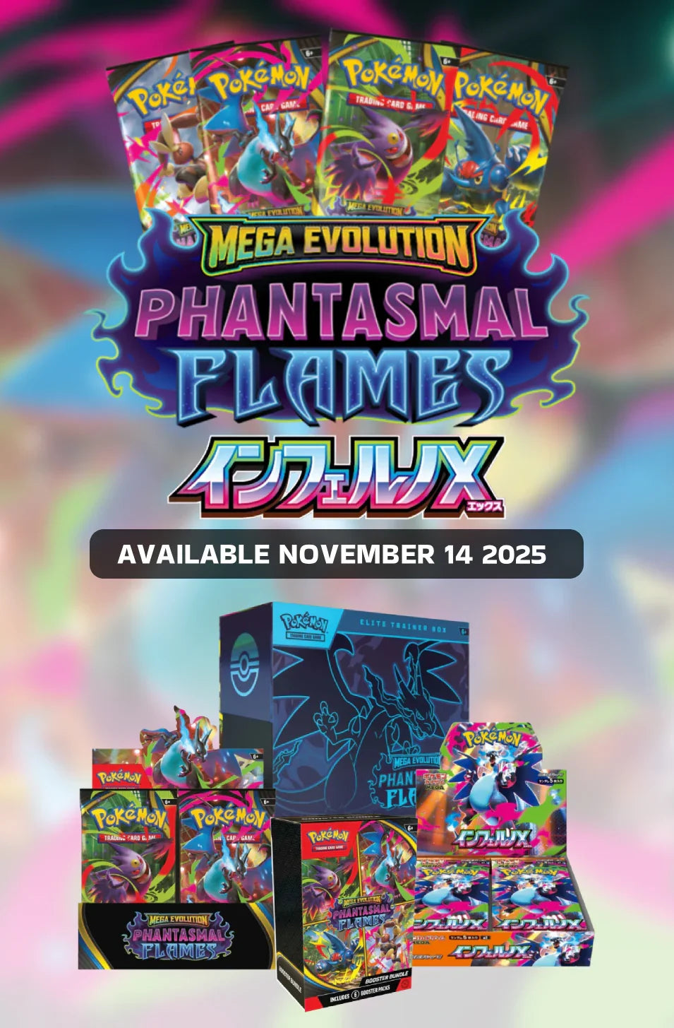 The wait is almost over — Phantasmal Flames releases on November 14th, 2025, and preorders are now open! Following the massive success of Mega Evolution, this set turns up the heat with even more stunning artwork and fan-favorite Pokémon.